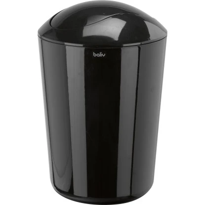 Der Eimer hat ein Fassungsvermögen von ca. 6 l. Dank der glänzenden Farbgebung in Schwarz fällt er dir sofort ins Auge. Der schicke Abfalleimer überzeugt mir seiner abgerundeten Form und setzt einen schönen Akzent in deinem Badezimmer. Durch den Schwingdeckel ist der Mülleimer schnell und einfach bedient: Mit einem kleinen Stupser gegen den Deckel wirfst du deinen Abfall hinein. Und mit dem Zurückschwingen des Deckels hat er ihn auch schon unsichtbar beseitigt. Der Schwingmülleimer ist aus Kunststoff gefertigt und damit leicht zu reinigen.