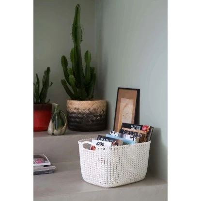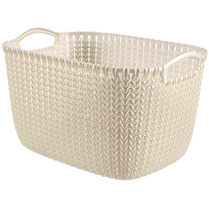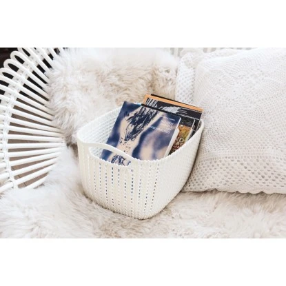Das Best Freizeitmöbel Aufbewahrungskörbe Curver Knit 3-er Set Weiß L besteht aus drei multifunktionalen, großen, rechteckigen Körben mit den Maßen 23,6 cm x 39,6 cm x 28,8 cm. Alle haben ein Fassungsvermögen von 19 l. Ihrer Dekoration verleihen sie mit dem unifarbenen Strick-Design auf der Außenseite und der flachen Innenfläche eine einzigartige und erstklassige Haptik. Sie können eine Vielzahl an verschiedenen Kleinteilen in den Behältnissen unterbringen.