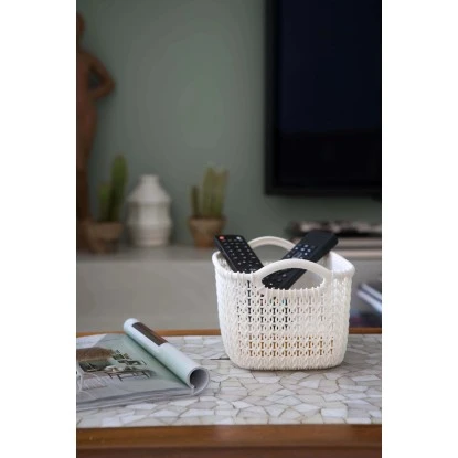 Die geräumigen Verwahrungskörbe sind ideal für den Einsatz im ganzen Haus geeignet und können im Wohnzimmer, Schlafzimmer, Bad oder Büro gebraucht werden. Alle Formen der Behälter sind nestbar und haben komfortable Griffe, wodurch sie beim Lagern keinen zusätzlichen Platz wegnehmen und einen leichten Transport ermöglichen.