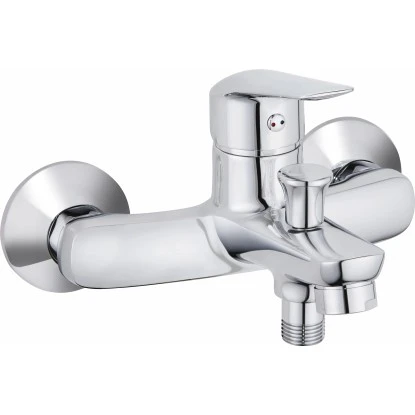 Die Armatur besteht aus Messing und besitzt eine chromfarbene, glänzende Oberfläche. Ausgestattet ist sie mit einer geprüften Markenkartusche sowie einer stufenlos einstellbaren Mischdüse. Sie eignet sich für die Wandmontage. Zudem ist eine praktische Umstellung für die Wannen- und Brausefunktion integriert.