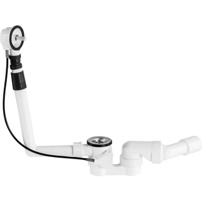 Die komfortable Excentergarnitur ist eine flexible Ab- und Überlaufgarnitur für die Badewanne. Sie bietet einen geruchsverhindernden Siphon mit Überlaufrohr und Stopfen. Der Ablaufanschluss an der Wanne hat ein Maß von 44,8 mm (G 1 1/2). Das integrierte Überlaufrohr wird am Überlaufloch der Wanne angebracht. Zum Anschluss an das Abflussrohr steht ein Durchmesser 40 mm oder 50 mm zur Verfügung. Ein praktischer Drehgriff am Überlauf ermöglicht das Öffnen eines Excenterventils oder Ablaufventiles. Ein in der Garnitur enthaltener Stopfen dient zum zuverlässigen Verschließen. Der Durchmesser des Stopfens beträgt 70 mm. Die Ablaufgarnitur besteht aus praktischem, weißen Kunststoff. Sie weist ein geringes Gewicht auf, bei hoher Stabilität. Das passende Excenterventil ist separat erhältlich.