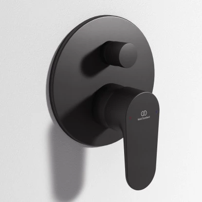 Die Ideal Standard Badearmatur Cerafine O zeichnet sich durch äußerst formschönes Design und herausragende Leistung aus. Mit Hilfe des Umstellers können Sie zwischen den beiden angeschlossenen Verbrauchen wechseln.
