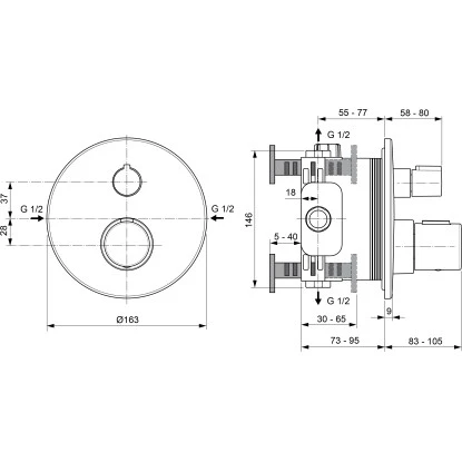 Der Ideal Standard Einzelthermostat Ceratherm T100 bewährt sich mit ergonomischen Design und einem unvergleichlichen Maß an Haltbarkeit, Sicherheit und Leistung. Dieses Thermostat verfügt über eine Absperrung für einen Verbraucher.