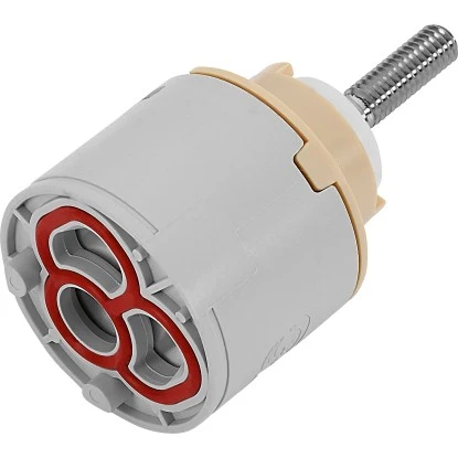 Die Keramikkartusche eignet sich zur Regelung von Durchflussmenge und Temperatur. Sie wird als Ersatzteil für Einhebelarmaturen verwendet und ist einsetzbar für die Serie Kasolo. Als Außenmaterial dient Kunststoff, während die Dichtscheiben aus Keramik bestehen.