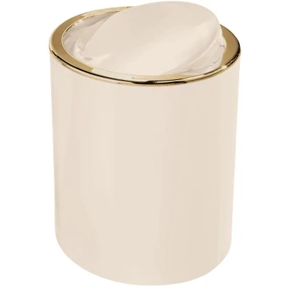 Der Kleine Wolke Kosmetikeimer Clap Natur-Gold ist nicht nur ein praktisches und unverzichtbares Badaccessoire, er ist aufgrund seiner schönen Form und der hochwertig glänzenden Oberfläche auch ein optisches Highlight. Durch den silbernen Dekoring wird das Design raffiniert abgerundet. Der praktische Schwingdeckel ist schnell zu öffnen und bietet trotzdem einen adäquaten Sichtschutz. Zum Leeren und Reinigen kann der Deckel bequem abgenommen werden.
