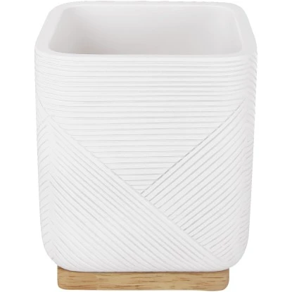 Der Zahnputzbecher aus der Accessoire-Serie Crossover von Kleine Wolke verbindet dekorative- und praktische Aspekte. Die elegante Kombination aus geprägten Linien und natürlichen Bambus-Elementen ergibt ein auffälliges Design mit dem Sie im Handumdrehen Highlights in Ihrem Badezimmer oder Gäste-WC setzen. Durch die hochwertige Verarbeitung der Accessoire-Serie bleibt die schöne Optik auch bei häufigem Gebrauch lange erhalten. Die porenarme Oberfläche der Innenseiten lässt sich besonders hygienisch reinigen und trocknet schnell. Diese schönen Bad-Accessoires werden Ihnen über einen langen Zeitraum viel Freude bereiten.