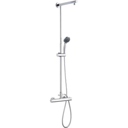 Das Sanotechnik Brausestangen-Set mit Thermostatmischer wird allen Wünschen und Bedürfnissen gerecht. Die Brausestange ist von 1 m bis 1,45 m individuell einstellbar. Mit dem integrierten Umsteller kann problemlos zwischen einer Handbrause und einer Regenbrause gewechselt werden. Die Handbrause ist mit 3 Funktionen und einem 150 cm langem Brauseschlauch ausgestattet. Die Überkopfbrause ist nicht im Lieferumfang enthalten.