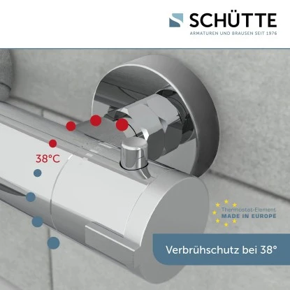 Die Thermostatarmatur ist werkseitig mit einer Temperatursperre bei 38° ausgestattet und minimiert damit das Risiko vor Verbrühungen – mehr Sicherheit für die ganze Familie.