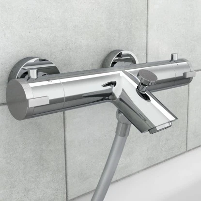 Die Mischbatterie Bad mit Thermostat sorgt für eine konstante Wassertemperatur ohne unangenehme Temperaturschwankungen. Bei Bedarf kann das Thermostat selbständig ausgewechselt werden ohne Einsatz eines Fachbetriebs.
