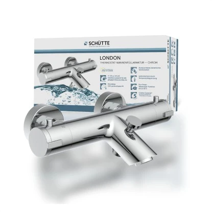 London Thermostat Wannenfüllarmatur Chrom. Die Badezimmer Armatur verfügt über ein in Europa hergestelltes Thermostat und steht für Qualität und Langlebigkeit.
