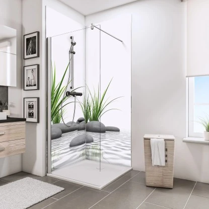 Wünschen Sie sich ein modernes Bad mit einem außergewöhnlich stilvollen Look? Dann ist eine Wandverkleidung der Serie DecoDesign des Markenherstellers Schulte das Richtige für Sie. Klare, harmonische Motive und hochwertige Materialqualität werden in diesen Duschrückwänden vereint. Die fugenlose Wandverkleidung schafft durch ihre stimmige Farbgebung eine angenehme Atmosphäre. Das darauf abgebildete Motiv lädt zum Träumen und Entspannen ein. Trotz ihrer edlen Beschaffenheit erweist sich die Duschrückwand zudem als überaus robust und unempfindlich gegenüber Kratzern, Sonnenlicht und Hitze bis zu 80°C. Bereits bei der Montage überzeugt das Produkt: Mit der ausführlichen Montageanleitung ist die Anbringung unkompliziert und rasch erledigt. Während das Fliesen eines Duschbereichs rund 42 Stunden dauert, können Sie die DecoDesign Platten schon nach etwa zwei Stunden bewundern. Darüber hinaus verursacht die Montage der Wandverkleidung von Schulte weitaus weniger Schmutz als das Erneuern von Fliesen. Ebenso zeitsparend fällt die alltägliche Reinigung und Pflege der beschichteten Dekorplatte aus. An dieser Stelle profitieren Sie erneut von der fugenlosen Oberfläche, da diese generell schmutzbeständig sowie wasserbeständig ist und sich leicht ohne aggressive Reiniger säubern lässt. Die Produkte der Serie DecoDesign können neben der Verwendung als Duschrückwand im Bad auch in allen anderen Räumlichkeiten fugenlos und ohne Fliesen angebracht werden.