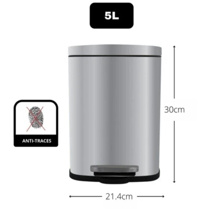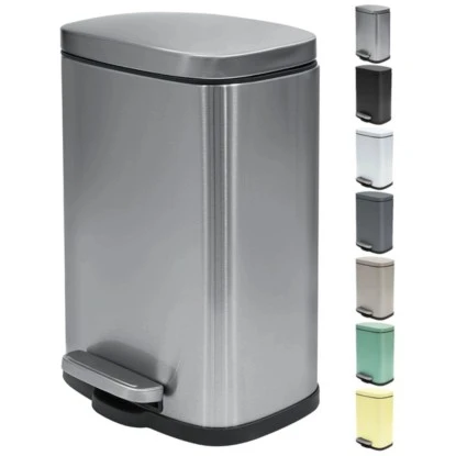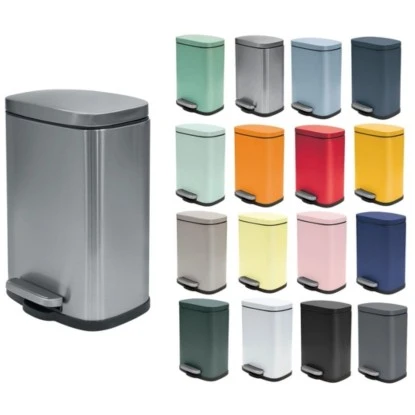 Der moderne Spirella Treteimer Akira gebürstet 5 l aus Metall ist mit einem herausnehmbarem Kunststoffeimer ausgestattet. Das Pedal ermöglicht ein müheloses Öffnen des Eimers.