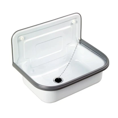 Das Stahl-Ausgussbecken ist Weiß emailliert. Im Lieferumfang enthalten sind Rückwandprofil, Ablaufventil, Verschlußstopfen und Montagematerial.