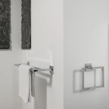 Zeichnen Sie vorerst die Löcher an der gewünschten Stelle an Ihrer Wand vor. Anschließend bohren Sie diese. Setzen Sie nun die Dübel ein. Nun können Sie den Handtuchhalter anschrauben und für Ihre Handtücher nutzen.