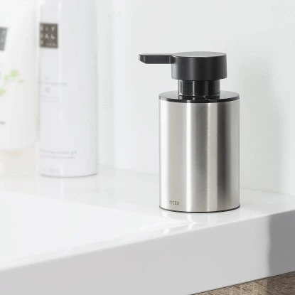 Die Serie Colar bietet modernes Design gepaart mit Funktionalität. Der Seifenspender in Edelstahl gebürstet kann Dank der großen Öffnung leicht befüllt und flexibel an unterschiedlichen Orten platziert werden.