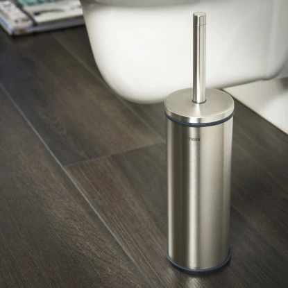 Die formschöne, freistehende WC-Bürstengarnitur aus gebürstetem Edelstahl der Serie Boston bietet Dank eines Kunststoff-Einsatzes ein hohes Maß an Hygiene und lässt sich einfach reinigen. Ein Kunststoff-Unterteil sorgt für sicheren Stand und verhindert Kratzer auf dem Boden. Die Ausstattungsserie Boston vereint robustes, elegantes Design mit Funktionalität und hochwertiger Verarbeitung. Die einfache, straffe Formgebung bringt Ruhe und Eleganz in jedes Bad.