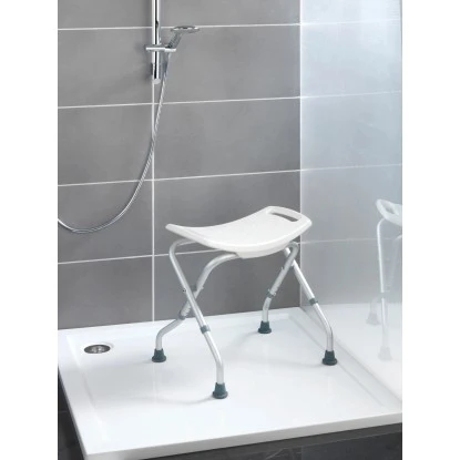 Der stabile Dusch- und Wannenhocker Secura von Wenko sorgt für mehr Sicherheit und Komfort beim Duschen oder Baden. Bei Nichtgebrauch kann er zusammengeklappt und platzsparend verstaut werden – ideal für kleine Wohnungen und Badezimmer. Der TÜV geprüfte Spezialhocker ist die ideale Sitzhilfe für Dusche oder Badewanne. Der besondere Vorteil dieses Hockers: Er ist je nach Bedarf 3-fach höhenverstellbar von 44,5-48 cm. Gefertigt aus hochwertigem Kunststoff hat der Sicherheitshocker eine Tragkraft von bis zu 120 kg. Die rostfreien Standbeine aus Aluminium sorgen mit rutschfesten Gummikappen für Sicherheit und schützen den Untergrund.