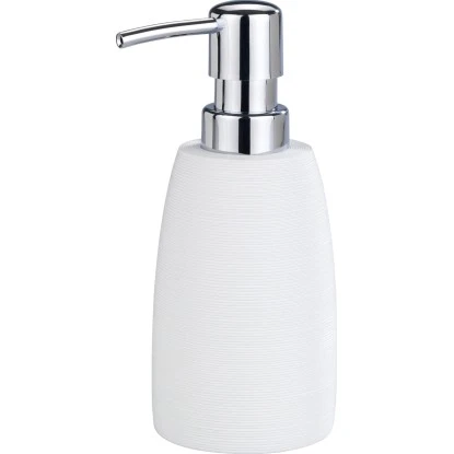 Die puristische Bad-Accessoires Serie Goa bringt schlichte Eleganz in jedes Badezimmer. Die Accessoires sind aus hochwertigem Polyresin gefertigt und mit einer attraktiven Form versehen. Der schöne Seifenspender Goa in klassischem Weiß kann individuell mit bis zu 210 ml Flüssigseife oder Waschlotion gefüllt werden. Durch leichten Druck auf den Dosierknopf wird die gewünschte Menge Seife bzw. Lotion herausgepumpt. Auch in der Küche macht der Seifenspender als Spülmittelspender eine hervorragende Figur. Einfach das Spülmittel einfüllen und vorbei sind die Zeiten der unansehnlichen Plastikflaschen. Passend zum edlen Seifenspender bietet die Serie Goa auch einen Zahnputzbecher, eine Seifenschale und eine WC-Garnitur an.