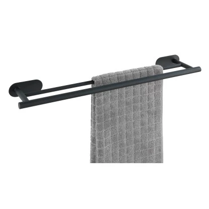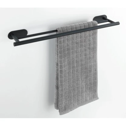 Das clevere Turbo-Loc-Wandbefestigungssystem von Wenko bietet dekorative Bad-Accessoires und Ablagen, die einfach – ohne schrauben, bohren oder dübeln – an der Wand zu befestigen sind. Die Befestigung ist kinderleicht. Die Turbo-Loc Wandbefestigung ist ein Klebesystem mit extrem festem Halt auf allen glatten Oberflächen. Einfach die Schutzfolie des Klebepads entfernen, die Halterung an der gewünschten Stelle fixieren und anpressen. Das Klebepad ist rückstandslos wieder entfernbar. Durch das Spezial-Klebepad System sind die Bad-Utensilien dauerhaft belastbar. Verleihen Sie Ihrem Zuhause einen neuen Lifestyle mit der hochwertigen Bad-Accessoire Serie Orea. Moderne Klarheit hält von nun an Einzug in Ihr Bad & Gäste-WC. Dabei vereinen die stylischen Badhelfer Funktionalität und Qualität. Die Bad-Serie besteht aus hochwertigem Edelstahl, welches 100 % rostfrei ist. Im erhabenen Schwarz gehalten sind alle Home-Accessoires originelle Design-Stücke im Industrial Chic. Das matte Finish verleiht Ihrem Bad vollkommene Ästhetik. Die 2-fachHandtuchstange Orea besteht aus zwei langen Aufhängestangen mit viel Platz für Handtücher oder Badetücher. So kann jedes Tuch auf der Badetuchstange vernünftig trocknen und wird stets griffbereit gehalten. Passend zu diesem Accessoire sind viele weitere Artikel der Serie Turbo-Loc Orea von Wenko erhältlich.