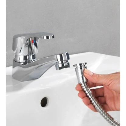 Schnell noch die Haare waschen bevor es zur Arbeit geht? Dazu braucht es ab sofort keine Dusche mehr. Auch das lästige über die Wanne lehnen hat ein Ende. Die einfache Lösung: die Waschbeckenbrause mit DUO Haken von Wenko für die schnelle Haarwäsche zwischendurch. Durch den Universal-Adapter kann die hochwertige Handdusche an jede handelsübliche Waschtischarmatur angebracht werden. Montage und Demontage sind durch den innovativen Easy-Clip Schnellverschluss kinderleicht. Der Duschschlauch ist dabei aus rostfreiem Edelstahl gefertigt. Der extra lange, knickfeste Schlauch (150 cm) sorgt für komfortables Spülen der Haare und ist flexibel einsetzbar. Der Brausekopf verfügt über ein schlankes, handliches Design und ist mit pflegeleichten Anti-Kalk-Noppen versehen. Die Wenko Waschbeckendusche ist zudem mit einem Duo Haken ausgestattet, der zusammen mit dem 3M-Klebepad für eine praktische Wandaufbewahrung dient.